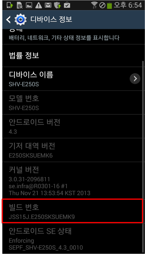 환경설정-디바이스정보-빌드번호항목을 찾습니다 여기서 빌드번호를 7차례 클릭합니다 (꾹 여러번 눌러보세요) 이후 개발자옵션이 활성화 됩니다.(치트키 같죠?) >