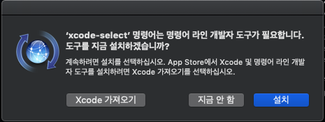 찾아보니 xcode툴이란다. xcode 관련 패키지는 설치하기 싫었지만 어쩔수 없다. 설치해보자
