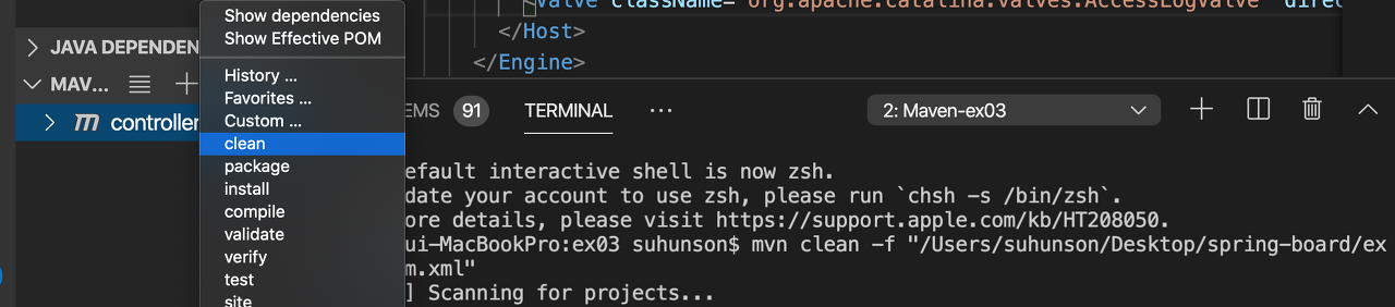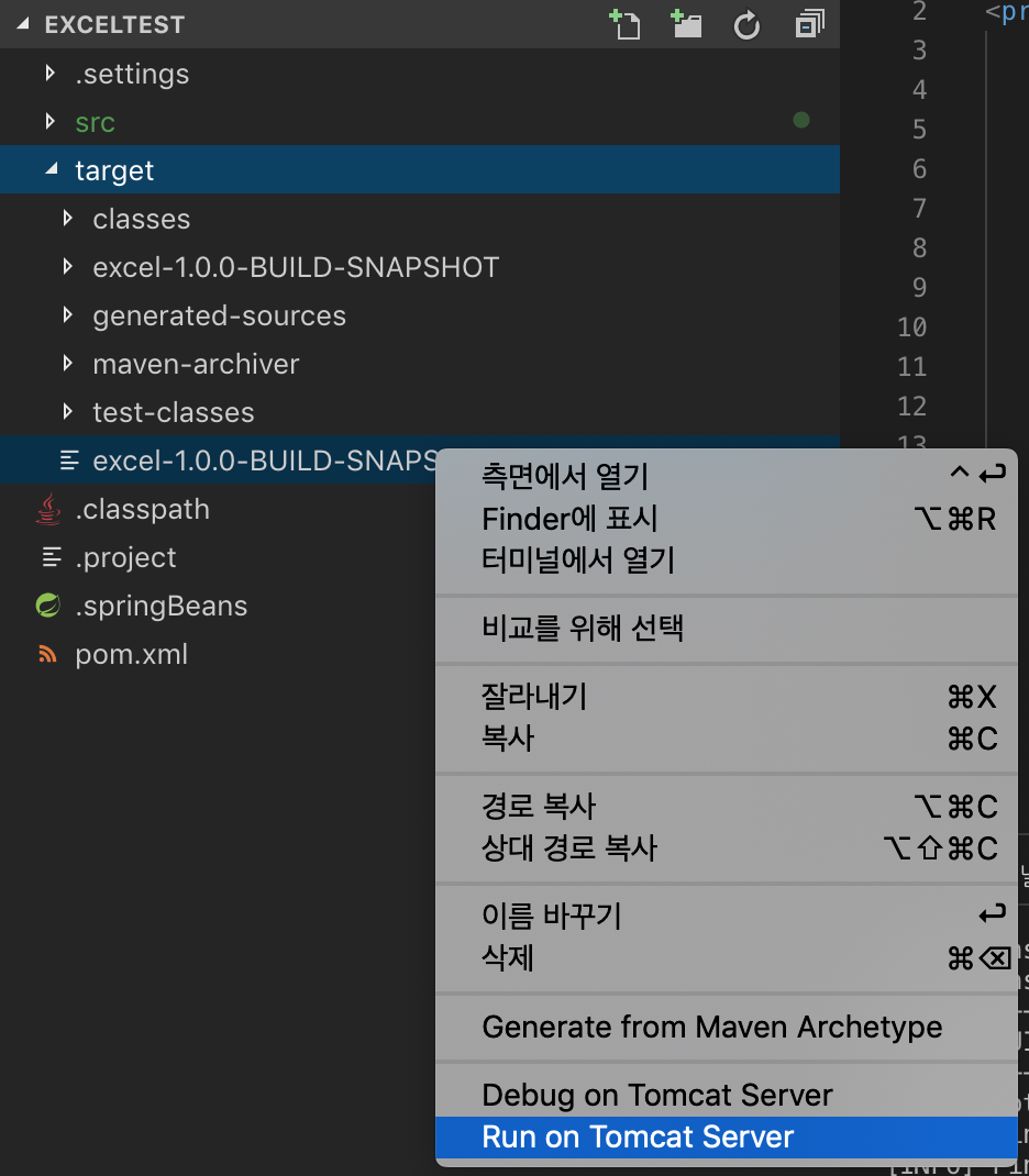 마우스 오른쪽 눌러서 maven명령어를 실행했을때 터미널에 명령어가 보이면 잘 연동됫다고 본다