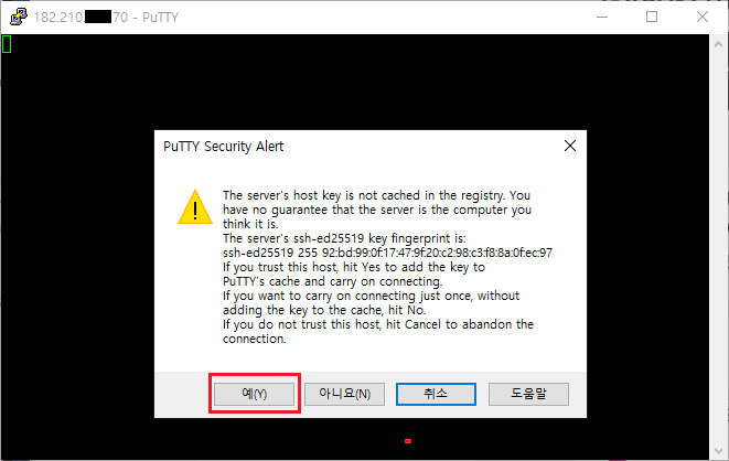 엔터 꽝 치고 예 버튼 클릭 후 접속