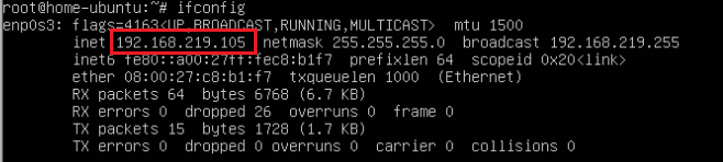 별도의 IP를 할당받아 ifconfig 명령어를 입력하면 IP를 확인 할 수 있습니다.