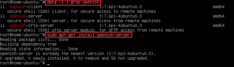 dpkg -l | grep openssh 입력 하시면 설치된 내역을 확인 할 수 있습니다.