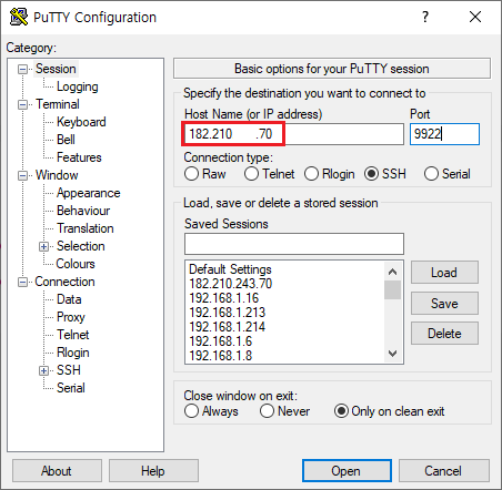 내부에서는 이렇게 세팅하면, putty를 통하여 접속할수 있습니다.
