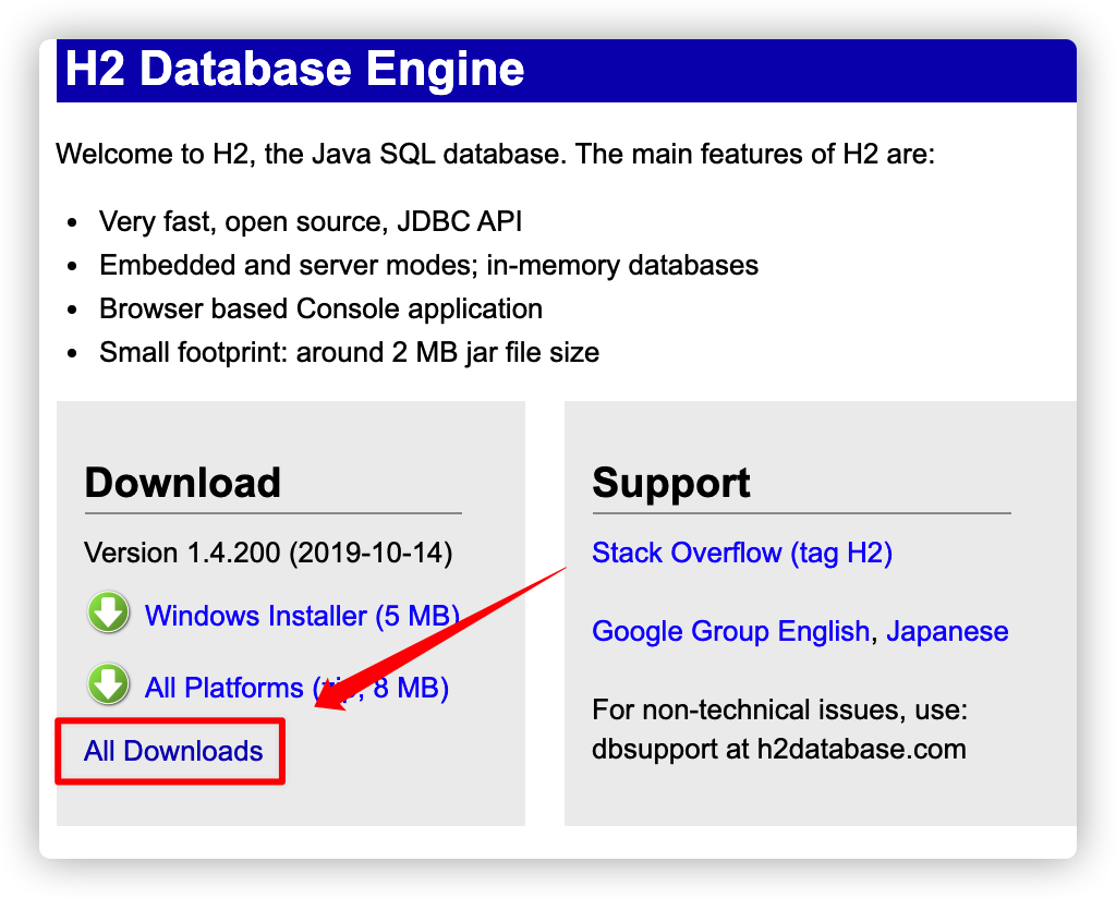 다운로드 링크 : https://www.h2database.com/html/main.html