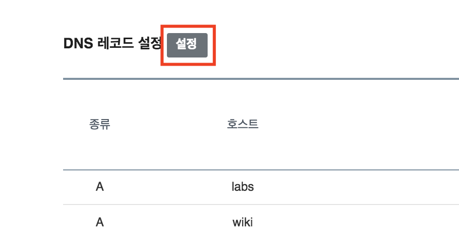 화면을 아래로 좀 스크롤 하면 DNS 레코드 설정의 "설정" 클릭
