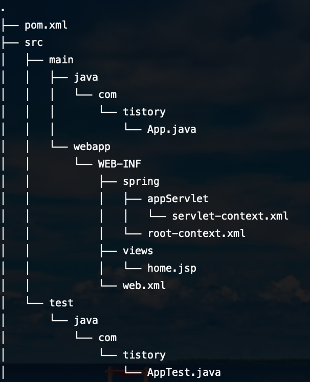 이렇게 Maven 구조가 완성되었습니다. 이제는 MVC형태로 폴더와 파일을 생성하고 pom.xml파일을 수정하여 필요한 라이브러리들을 설치할겁니다.