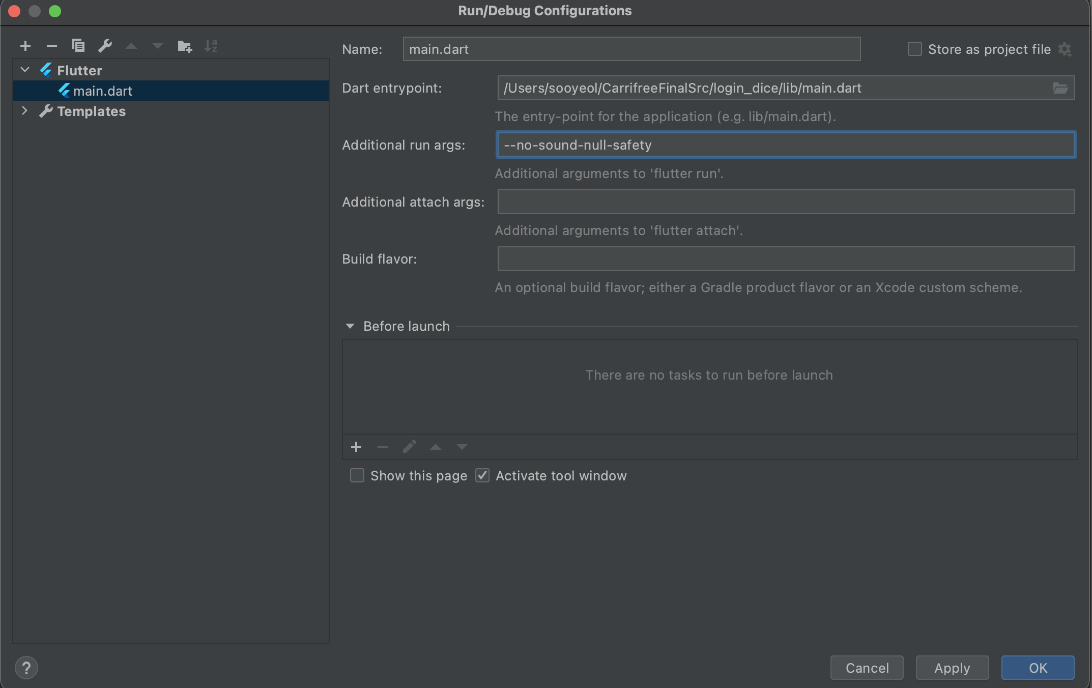 "--no-sound-null-safety" 라고 커맨드를 입력한 다음,