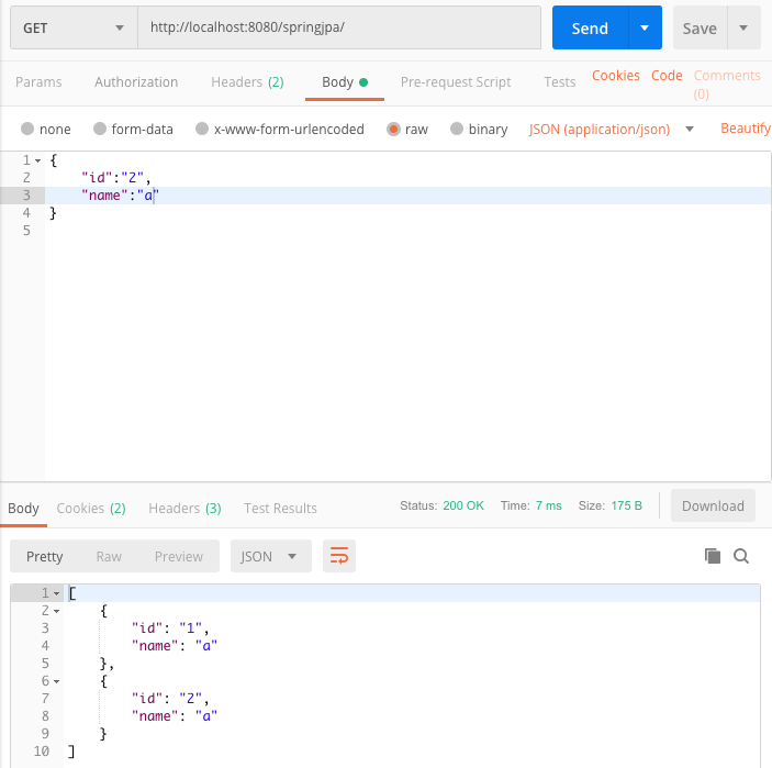 @RestController @RequestMapping(value = "/springjpa") public class SpringJpaController { @Autowired private SpringJpaService springJpaService; @RequestMapping(value = "/{id}", method = RequestMethod.GET) public User getUserOne(@PathVariable String id) { return springJpaService.getUserOne(id); } @RequestMapping(value = "/", method = RequestMethod.GET) public List<User> getUserAll() { return springJpaService.getUserAll(); } } Colored by Color Scripter |